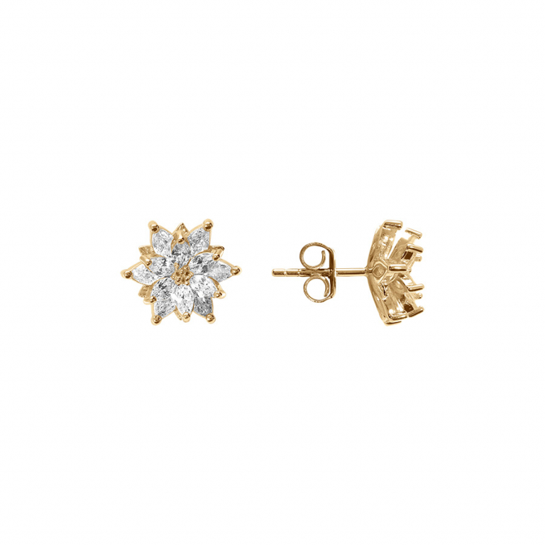 BOUCLES D'OREILLES TIGE VERMEIL FLEUR OXYDES BLANCS SERTIS