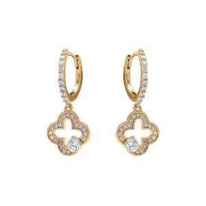 BOUCLES D'OREILLES TIGE ARGENT DORÉ PENDANTE 4 OXYDES BLANCS SERTIS