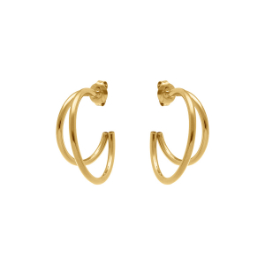 CRÉOLES ACIER DORÉ 2 ANNEAUX ENTREMÉLÉS