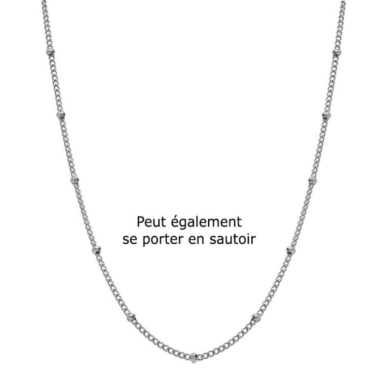 COLLIER SAUTOIR OU CHAINE DE VENTRE ACIER AVEC BOULES 65.5+20.5CM