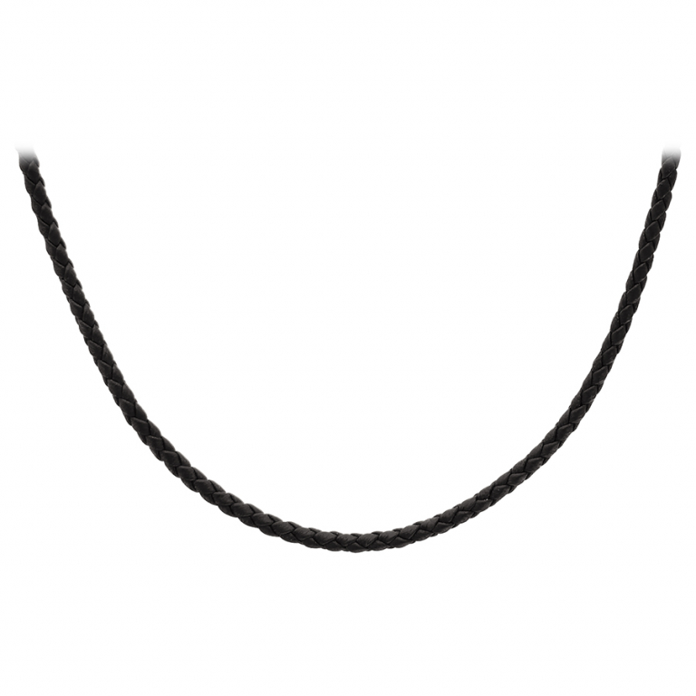COLLIER ARGENT RHODIÉ CORDON CUIR BOVIN TRESSE NOIR 55+5CM