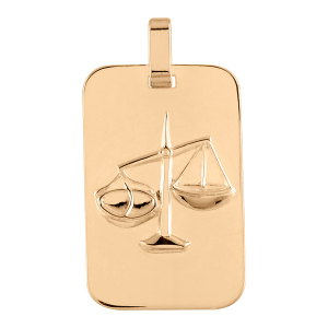 COLLIER ACIER DORÉ MEDAILLE 15MM ZODIAQUE BALANCE RECTO VERSO CONSTELLATION 40+10CM