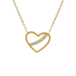 COLLIER ACIER DORÉ JAUNE PENDENTIF COEUR OXYDES BLANCS SERTIS 42+5CM