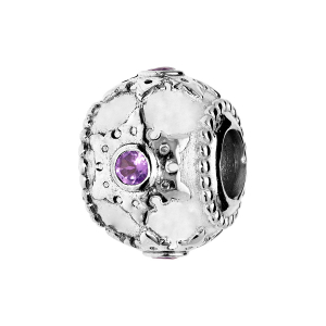 CHARMS COULISSANT ARGENT RHODIÉ MURANO VIOLET TRANSPARENT AVEC COEUR